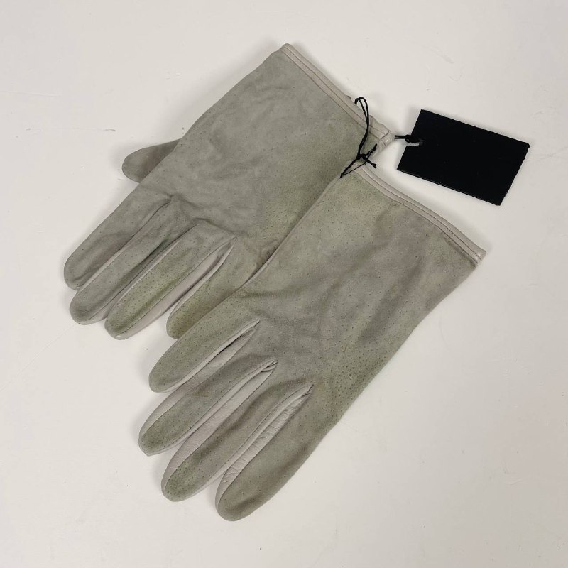 Винтажные перчатки Roeckl (новые с этикеткой). Германия. Тончайшая кожа и замша серого цвета с зелёными вкраплениями.