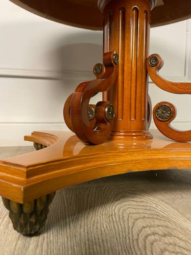 Журнальный столик в стиле ампир, 2-ая половина ХХ века, Decca, США. Массив груши, лак. Размеры: высота 56 см, диаметр 70 см.