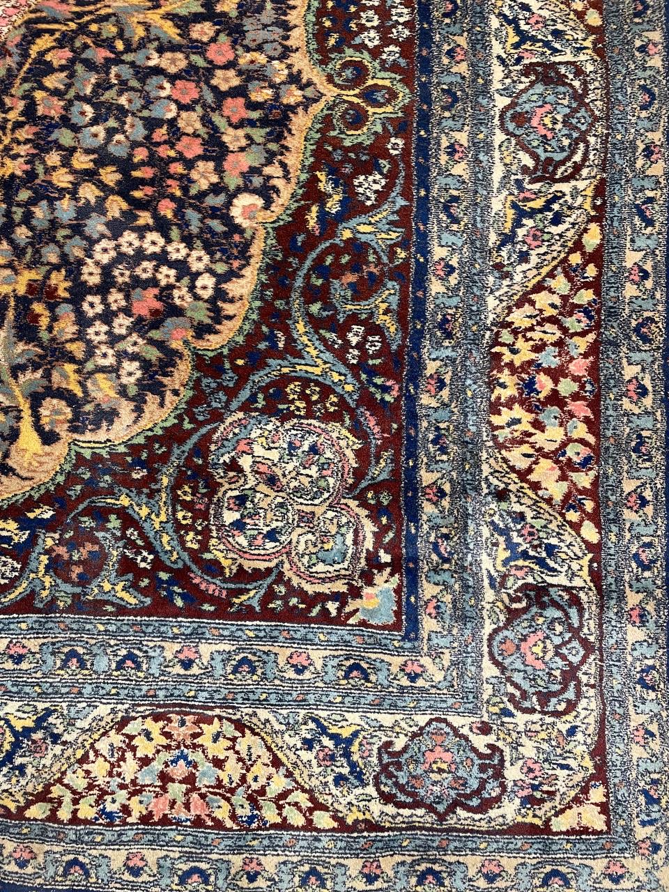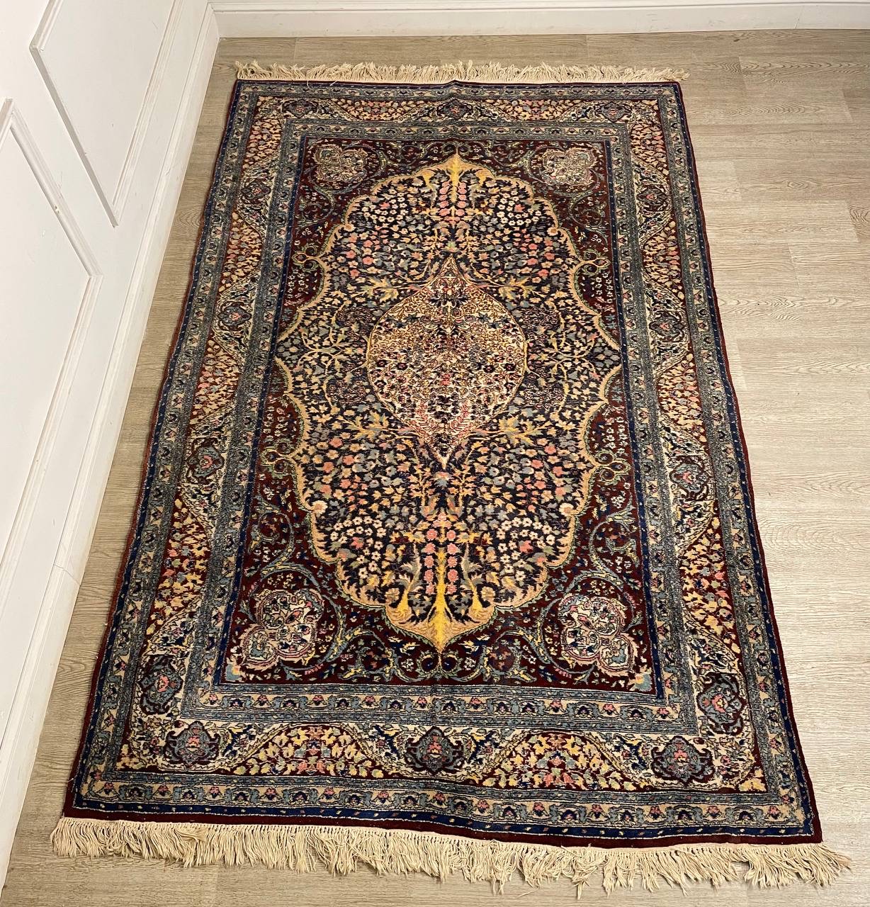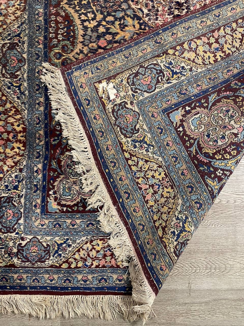 Винтажный ковер в восточном стиле, Биджар, Иран. Ориентировочно 1970-1980 гг. Выполнен из шерсти 100%. Аутентичные орнаменты в восточном стиле. Биджарские ковры являются одними из наиболее колоритных среди персидских изделий и отличаются строгой торжественностью дизайна. Эти полотна традиционно изготавливаются из натуральной шерсти. Высочайшая плотность плетения, характерная для биджарских ковров, позволяет создать особенно прочную, комфортную на ощупь поверхность с максимально детализированным, чётким рисунком. Насыщенная цветовая гамма, состоящая из глубоких рубиновых, охристых и багровых.
