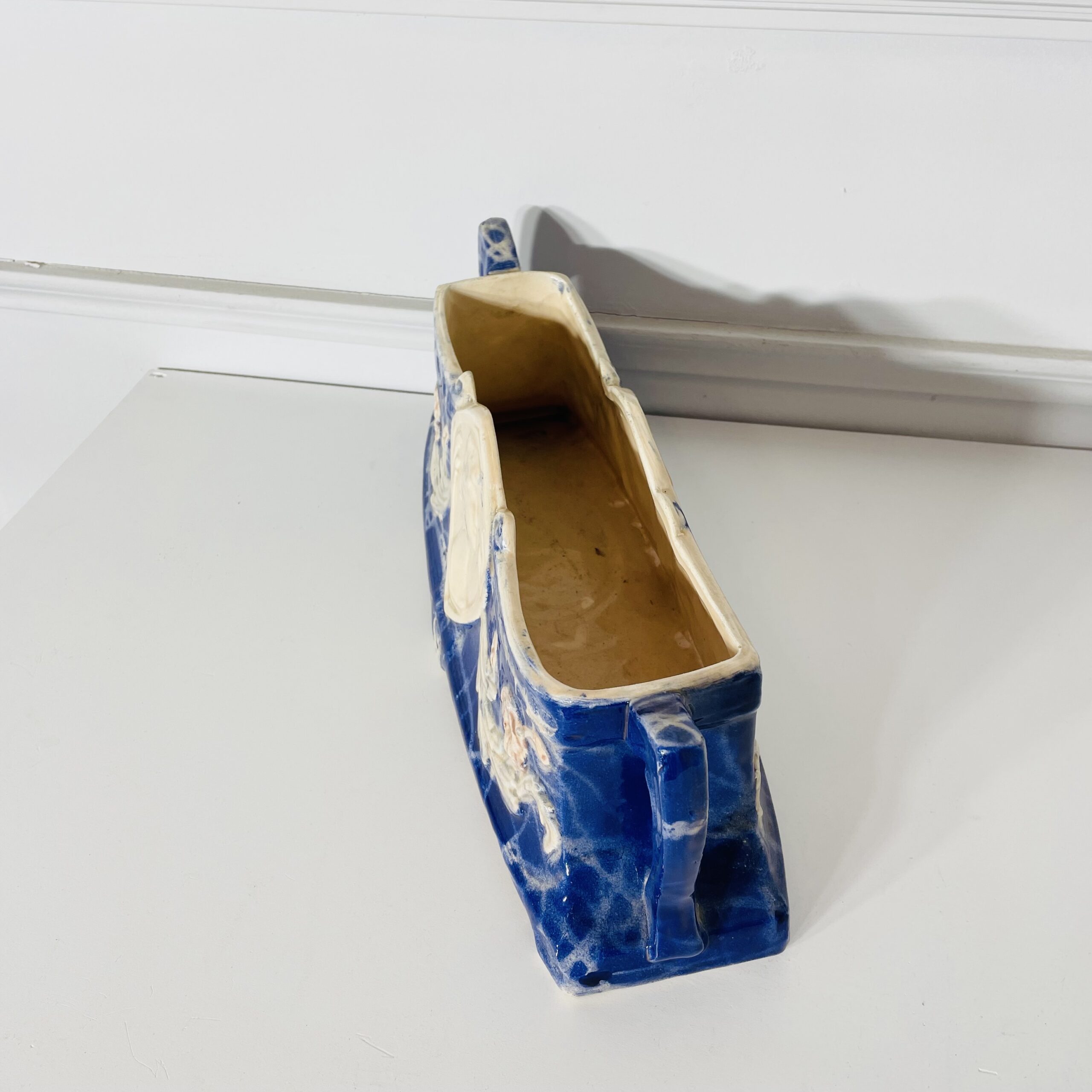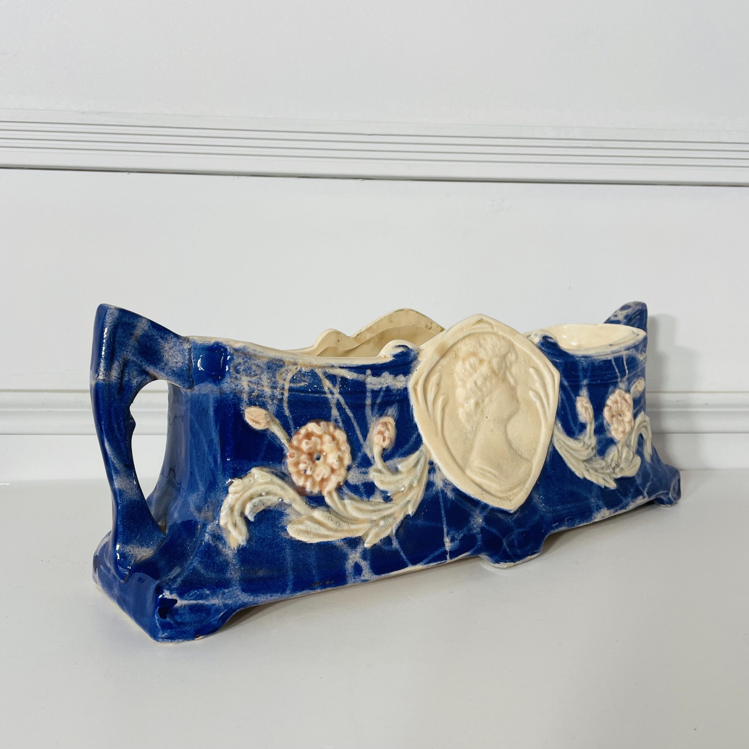 Жардиньерка (ваза для цветов) в стиле Ар-Нуво начала XX века, Франция. Выполнена из фаянса, лепка, роспись. Размер 40х10х15h см.