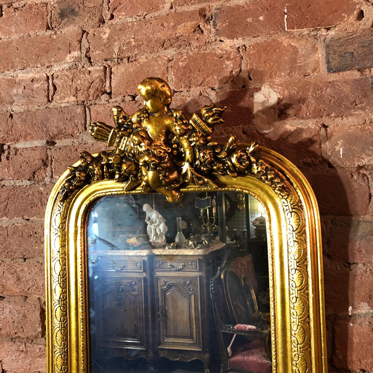 Зеркало середины XX века, Франция. Выполнено из дерева, гипса и позолоты. Оригинальное зеркальное полотно. Размер 51х86h см.
